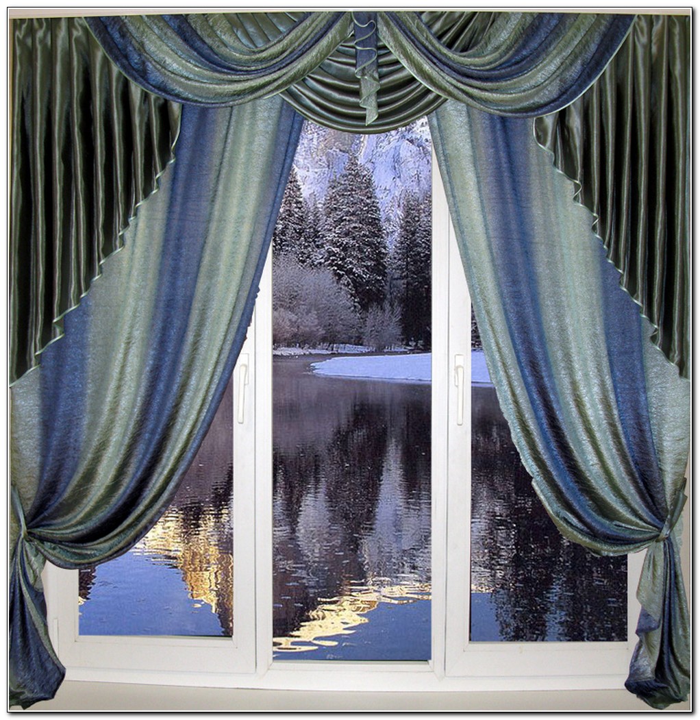Описание: Стильные портьеры в серо-голубых тонах, выполненные из сочетания жатки «Радуга» и атласного креп-сатена в виде драпированных вставок на ламбрекене. Ламбрекен съемный, портьеры снабжены подхватами.Портьеры могут быть любого размера и цвета, по желанию заказчика.