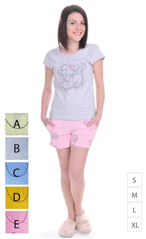 Описание: Молодежные футболка и шортики для дома и отдыха. Пять цветовых решений: нежные оттенки розового, сиреневого, серого, желтого и голубого цветов. Удобный крой и оригинальные принты.