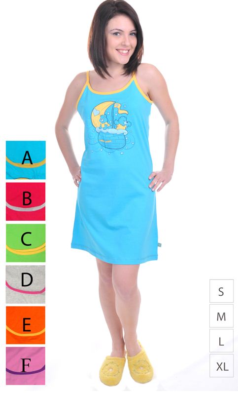 Описание: Туника для девушек на бретельках для дома и отдыха. Модель представлена в шести цветовых решениях: ярко-голубой, ярко-розовый, зелёный, ярко-оранжевый, светло-серый и сиреневый.