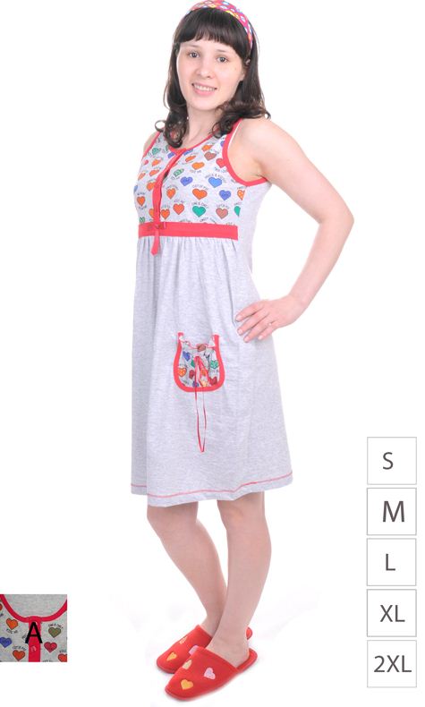 Описание: Расклешённая туника с коротким рукавом и яркими рюшами подходит для дома и загородного отдыха. Основной пастельный серый цвет в сочетании с голубым, розовым, ярко-розовым и фиолетовым рисунком позволит выглядеть элегантно даже дома.